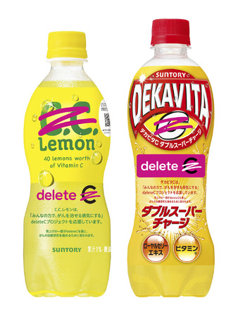 Cancer(がん)の頭文字「C」の文字を消すことに賛同し、「C.C.レモン」「デカビタC」の「C」を消したデザインラベルです。また、「みんなの力で、がんを治せる病気にする」deleteC プロジェクトを応援していることを、ラベル下部に大きく記載することで、本商品がdeleteC プロジェクトに参画していることを分かりやすく表現しています。