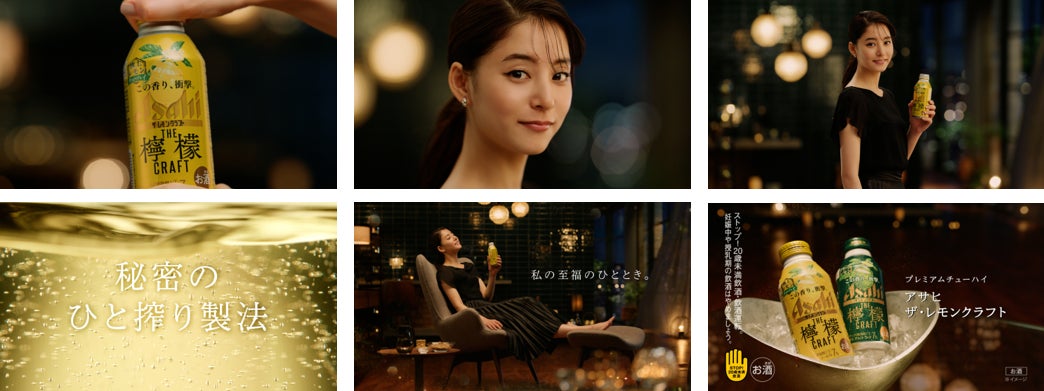 「レモンクラフト 王道レモン登場」篇は、新木さんが『アサヒ ザ・レモンクラフト 極上レモン』のボトルキャップを開封するシーンから始まります。新木さんが「知りたい?じぶん時間を最高にする秘密。」とつぶやき、その後“秘密のひと搾り製法”による香りや味わいを楽しむシーンを通じて“至福のひととき”を描いています。ラストカットでは新木さんが新商品『アサヒ ザ・レモンクラフト 王道レモン』を紹介します。週末やお休みの日に時間をかけてゆっくりと味わえる“ご褒美チューハイ”を訴求します。
