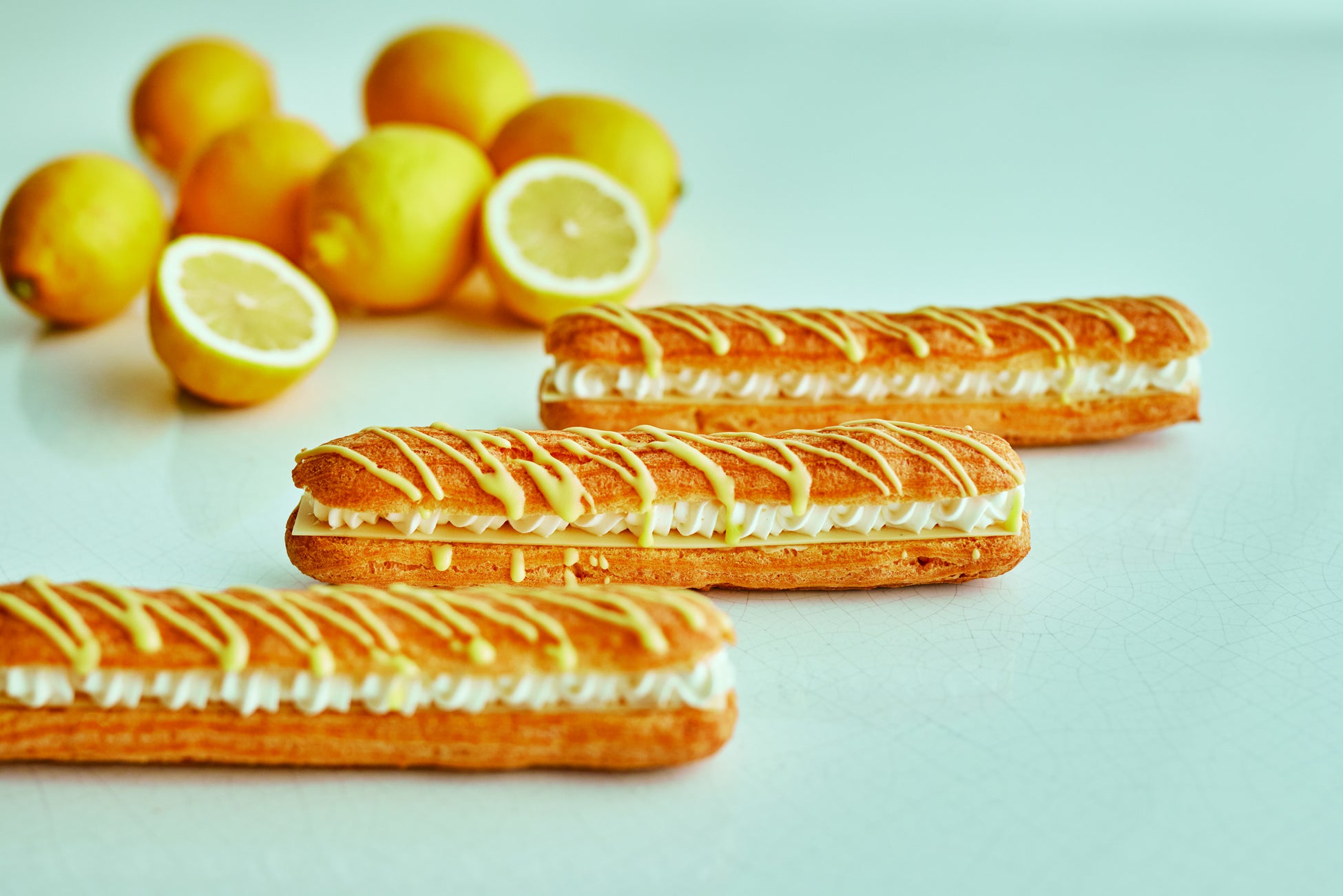 レモン風味のフィリングにサクサクのパイを重ね、ホワイトチョコレートでコーティング。