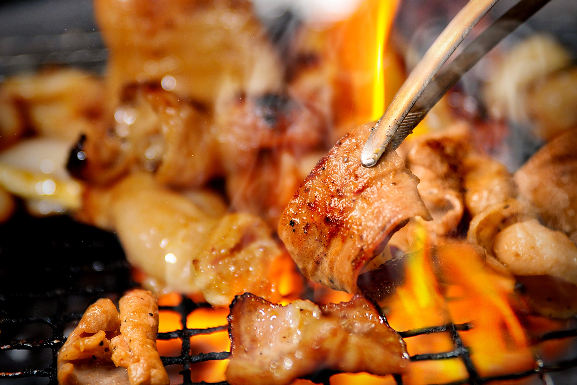 国産豚、⼩腸、⼤腸、ガツのミックスホルモンを秘伝の塩だれに漬け込んだ「塩ホルモン」は、ほとんどのお客様がオーダーする、ときわ亭創業以来の⼈気メニューです。