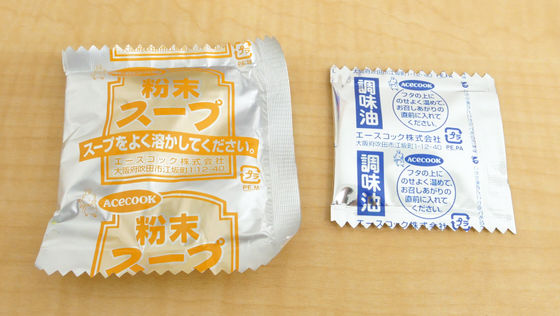 まずはふたを開け粉末スープと調味油を取り出します。