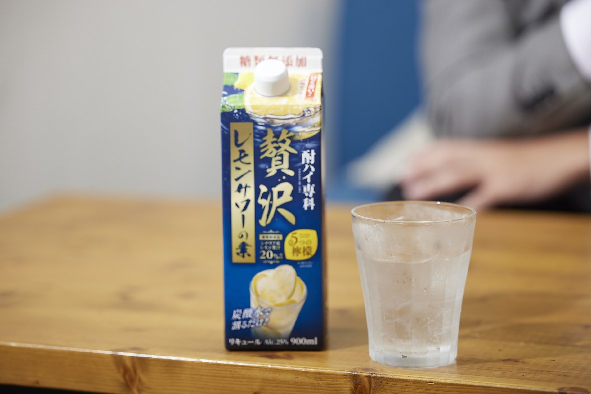 お店でおなじみの味が最初は缶チューハイになり、その次にレモンサワーの素ができました。居酒屋で飲まれている業務用の「樽ハイ倶楽部」の味をレモンサワーの素として表現したものです。