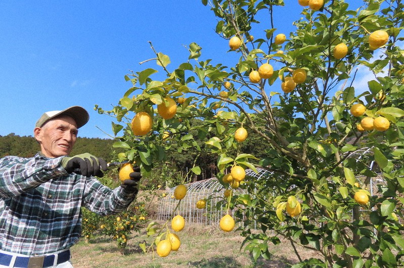 福智町上野(あがの)で、筑豊地区では珍しいレモンの収穫がピークを迎えている。
