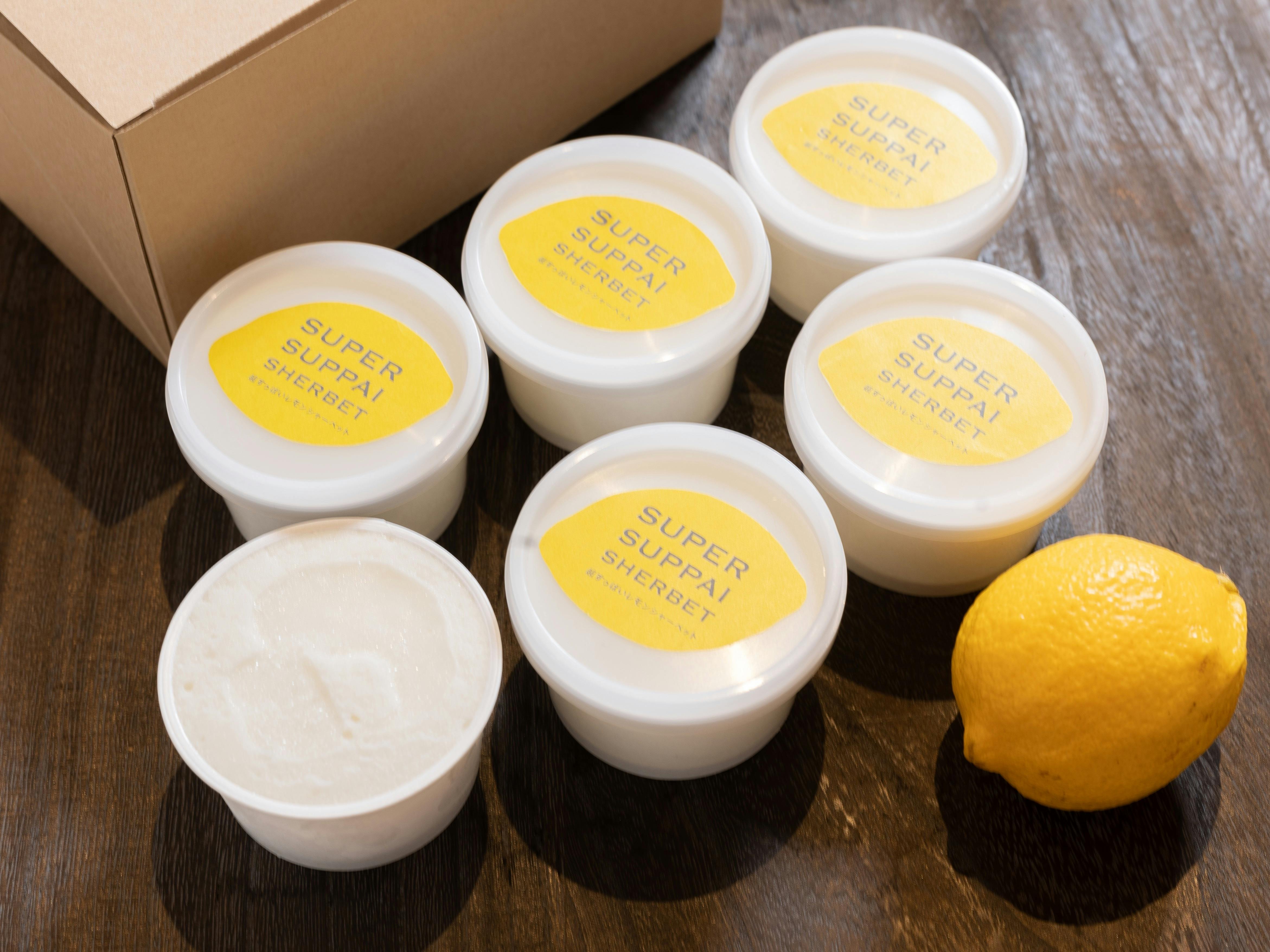 そして、レモン好きさんにぜひトライしてもらいたいのが紀の川市の人気ジェラート店「 藤桃庵 」さんとコラボした「 大手メーカーさんは絶対作らないスーパーすっぱいレモンシャーベット 」! これは、一言で表現するなら「 すっぱうまい! 」逸品です。どのくらいすっぱいかと言うと、私がプロデュースするものは全ておいしく食べてくれる母が諦めたほどのすっぱさです。
