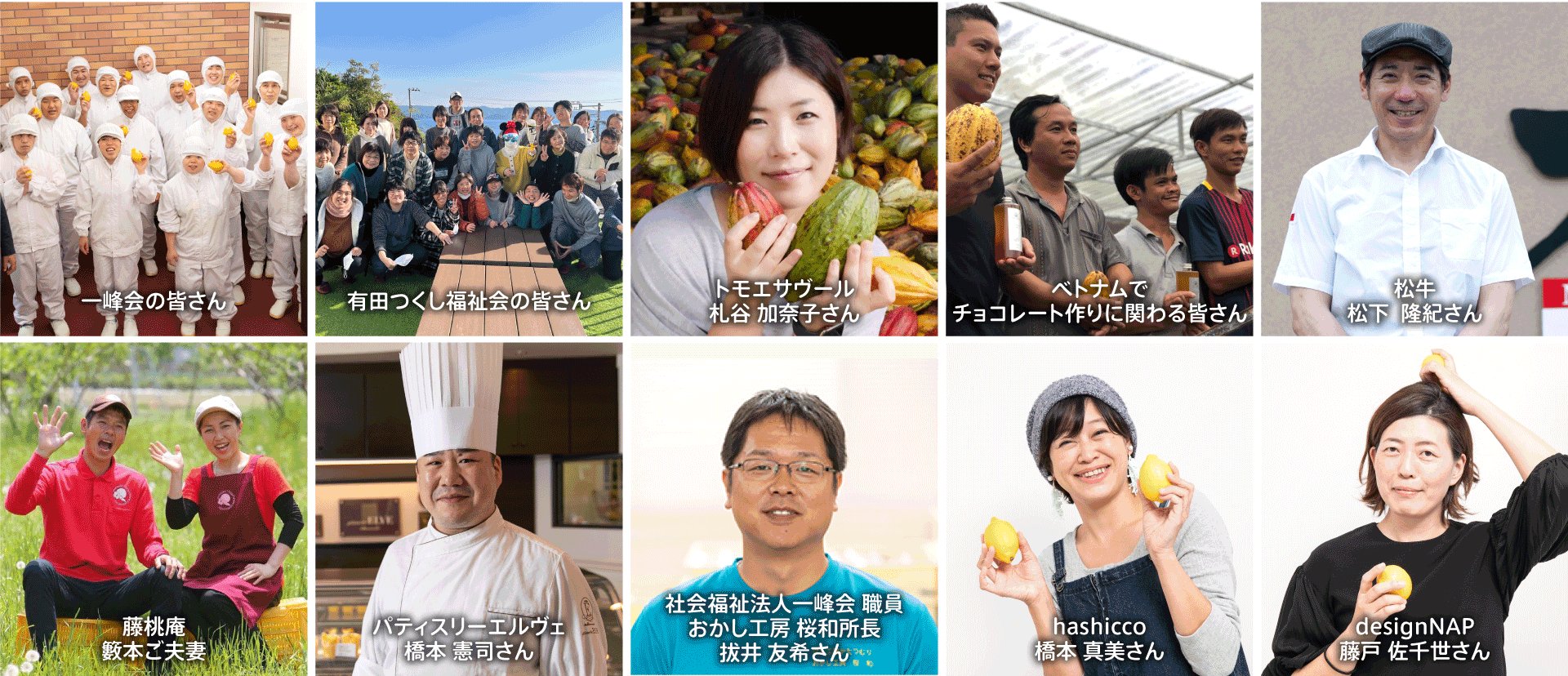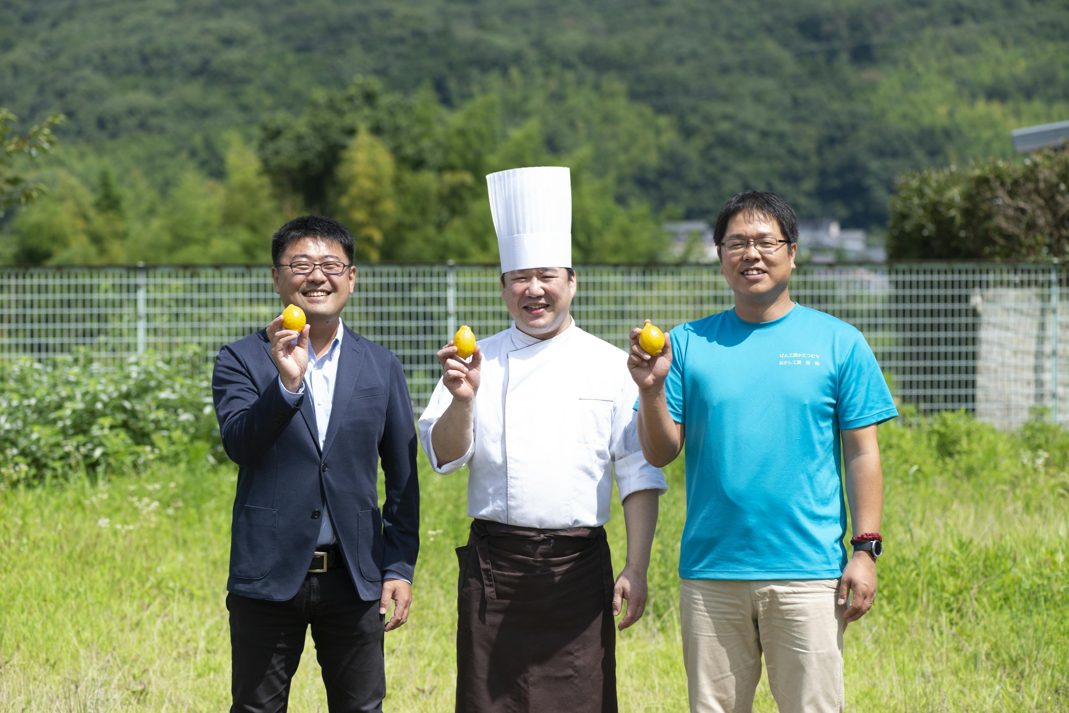 現在、海南市の社会福祉法人「 一峰会 」さんのメンバーをチームの一員として、レモンの搾汁や皮剥き、果汁の濃縮、粉末化、そしてパティシエの指導のもとお菓子の製造といった部分まで幅広く担っていただいています。