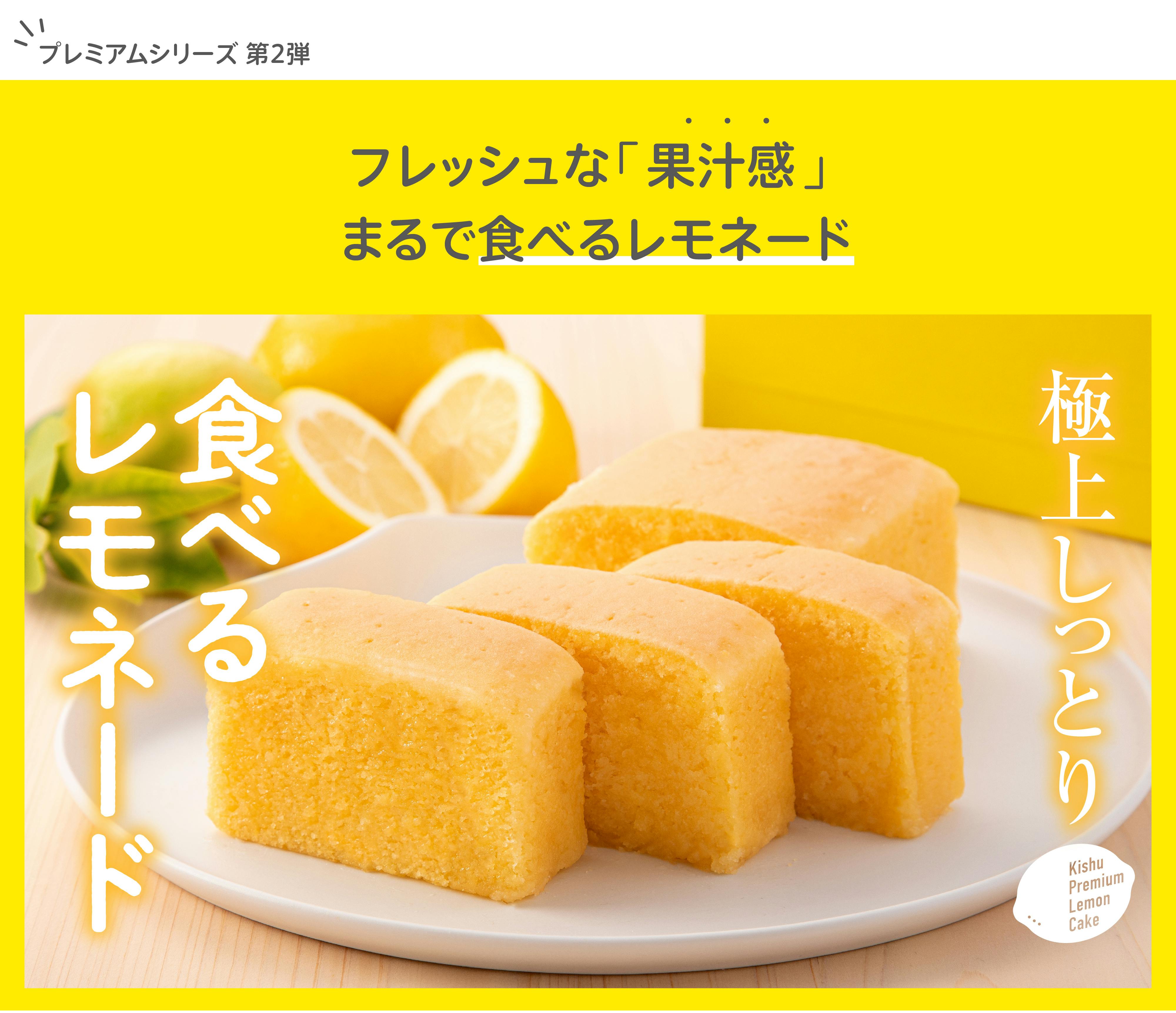 シンプルな見た目なのに、口に入れると鮮烈なレモンの風味としっとり感に驚かされる『 紀州プレミアムレモンケーキ BAKE 』。その味わいは「 まるで食べるレモネード 」と言われています。