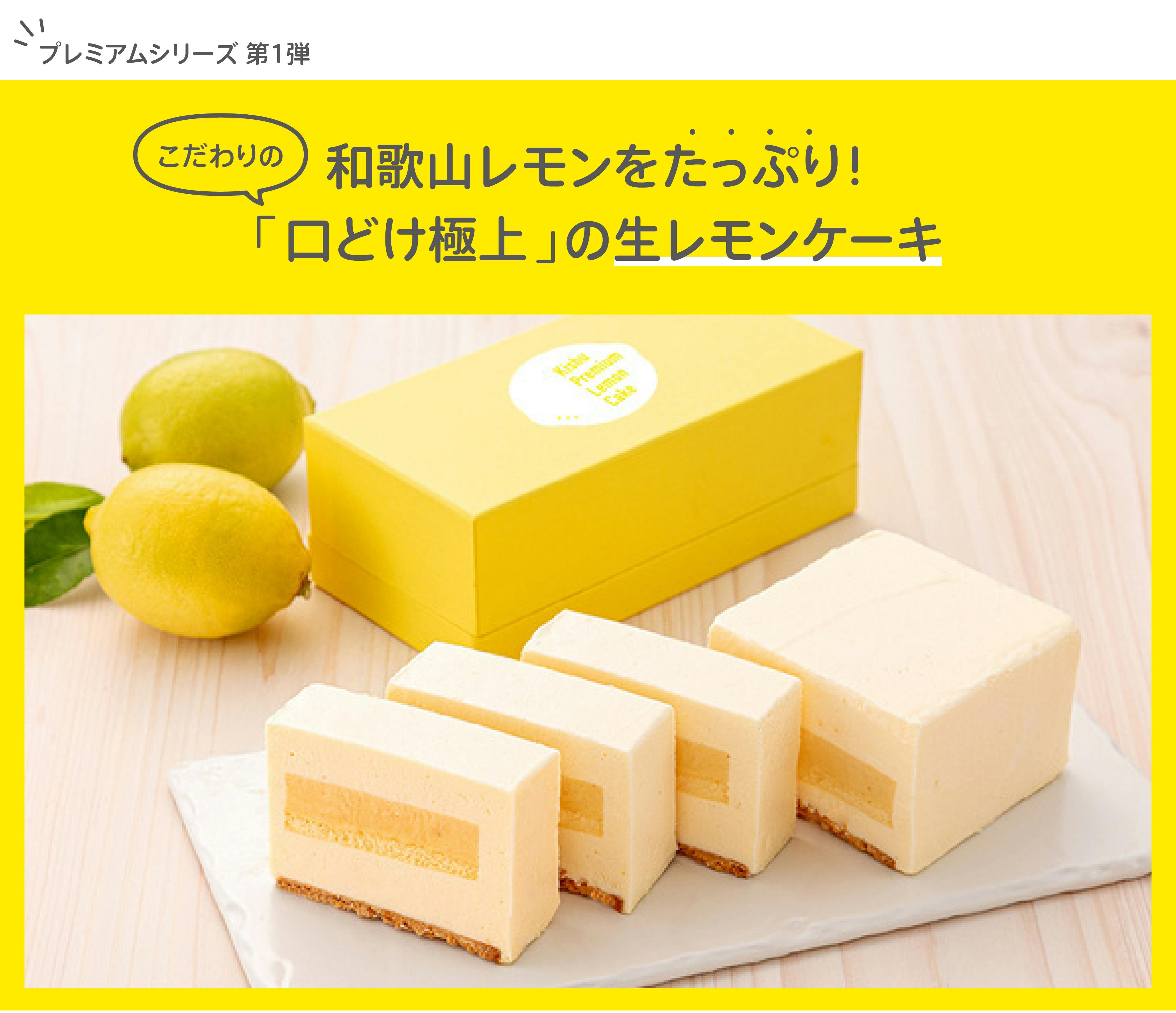 プレミアムシリーズはどちらかというと、レモン好きの大人に向けた、酸味も活かした妥協のないレモン味。これらはお子様からでも楽しんでいただける少しマイルドなレモン味に仕上げています。とはいえ、和歌山産のレモンをしっかり用いたレモンスイーツばかり。レモン本来の味わいはしっかりと楽しんでいただけます。