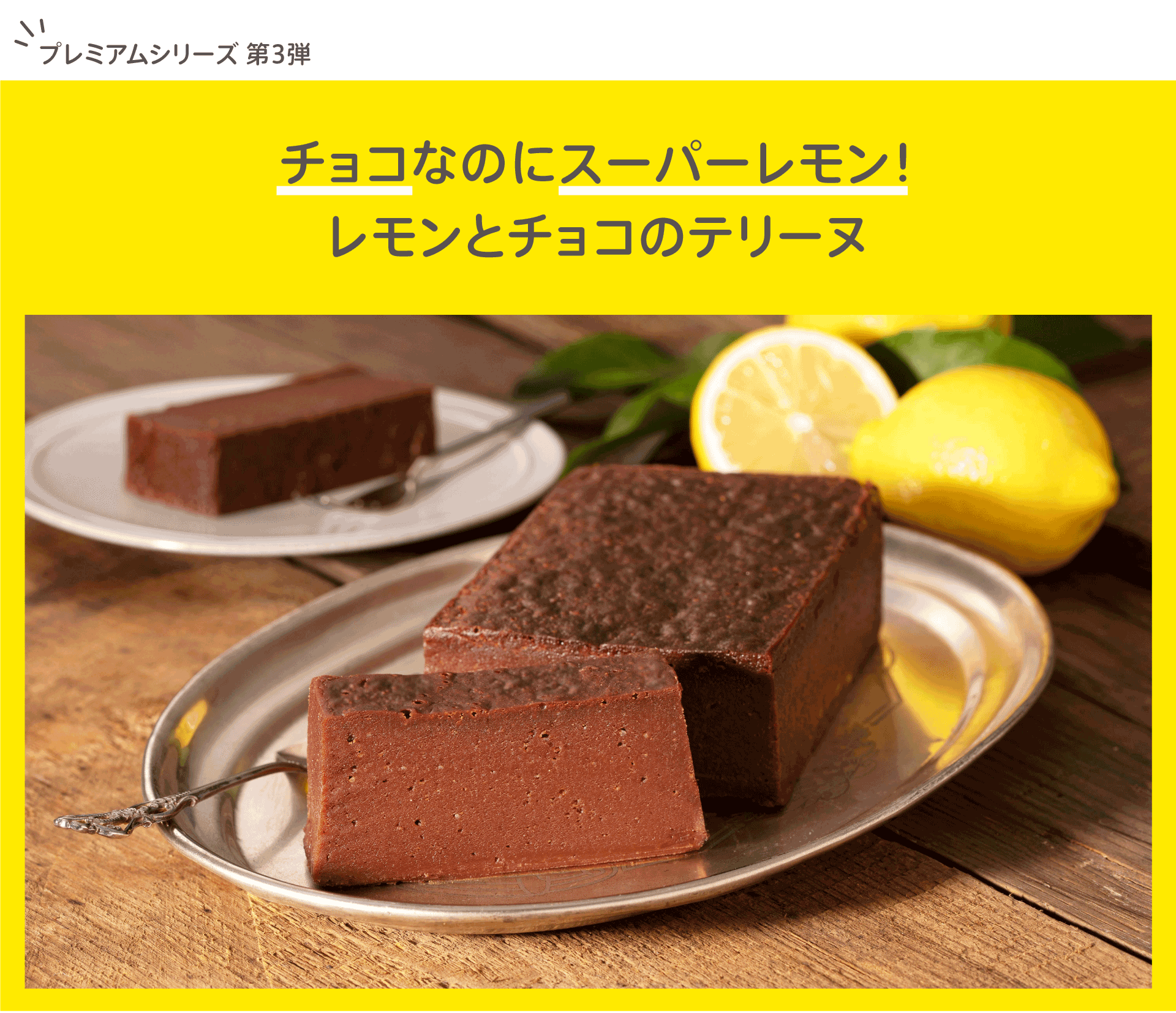 チョコなのにスーパーレモン! という新境地を開拓したのがこの『 紀州プレミアムレモン・チョコテリーヌ 』。チョコレートソムリエの札谷加奈子さんを通じて出会った「カカオシロップ」がアクセントのテリーヌです。